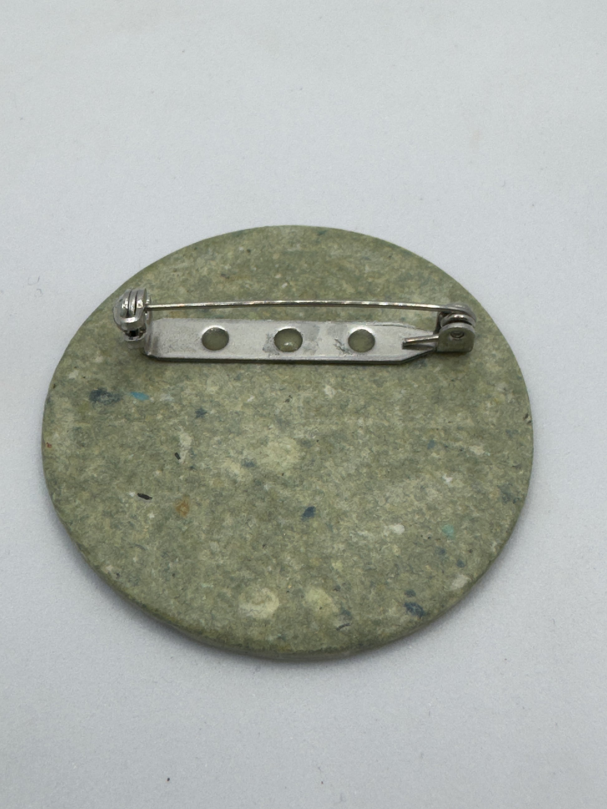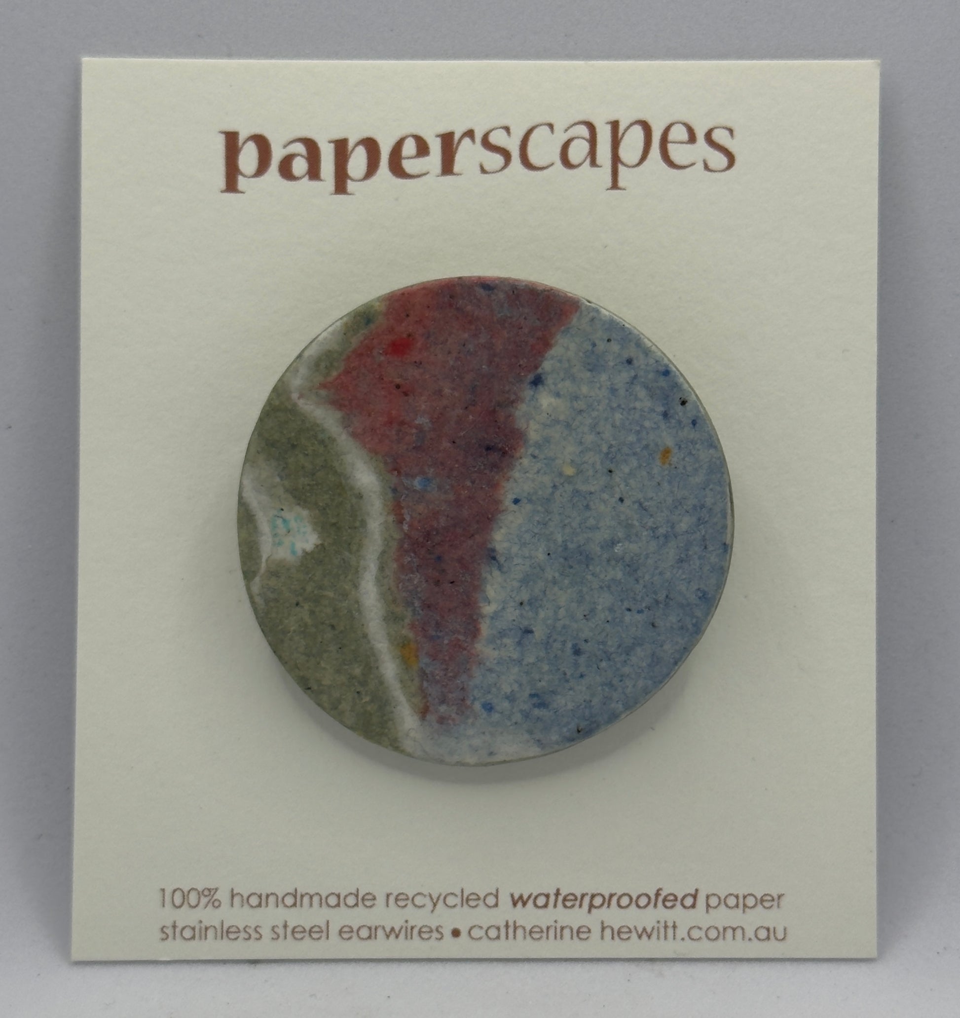 100% Handmade recycled waterproofed paper brooch with stainless steel brooch back 45mm diameter.