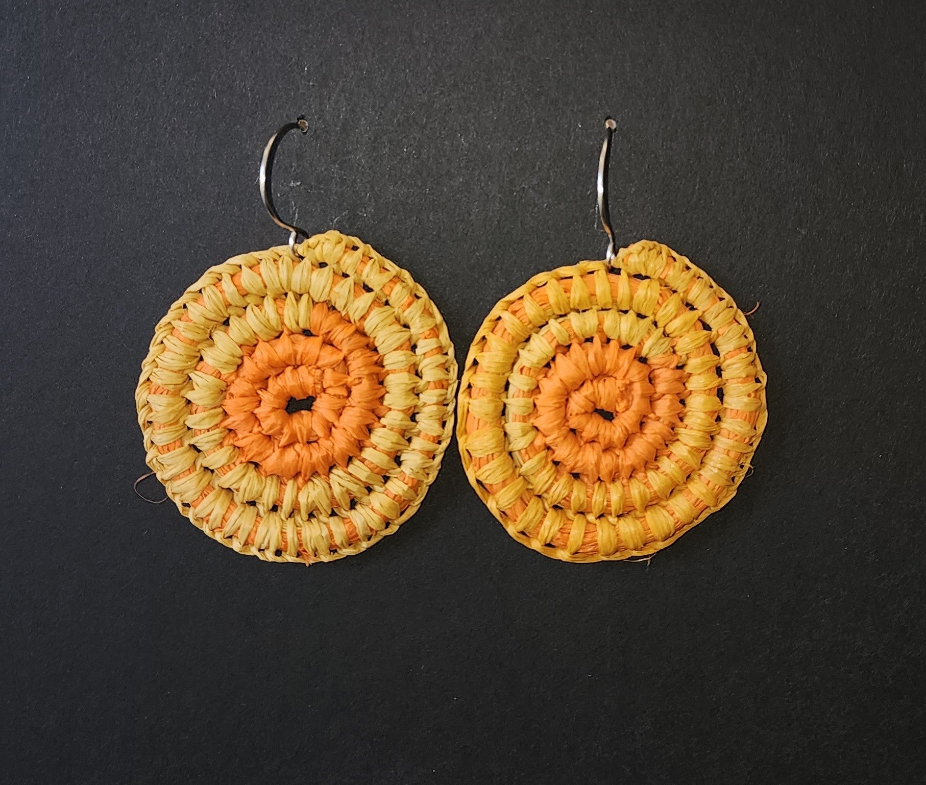 Orange Medium Round Woven Earrings by Tahnae Davison-Bartley